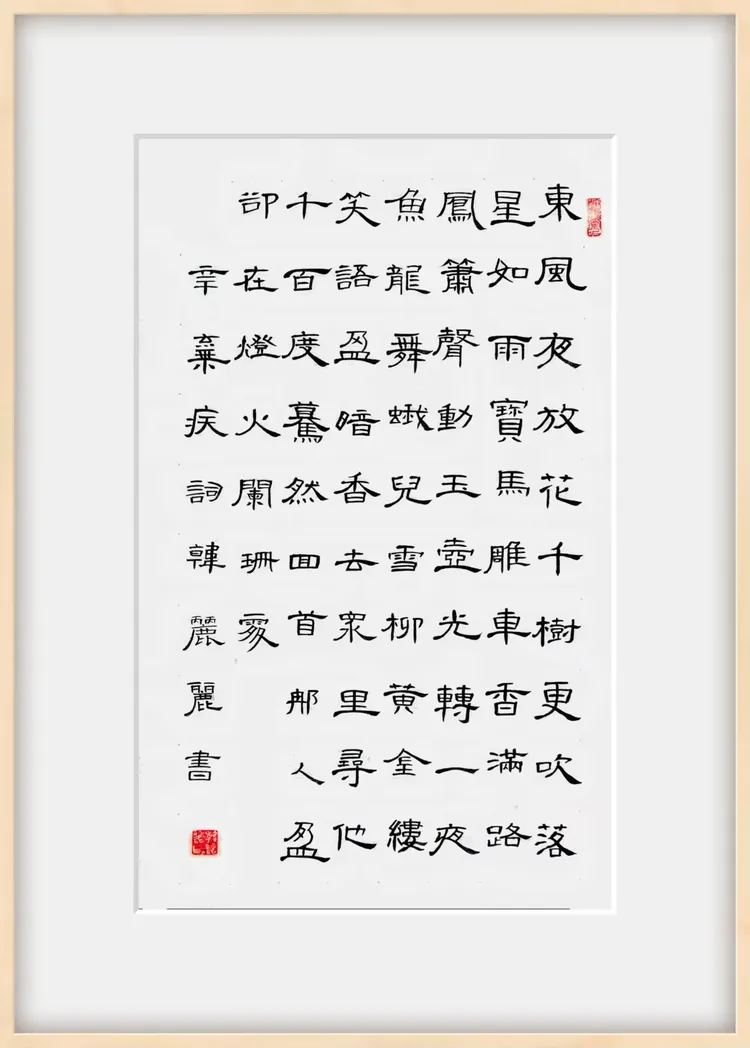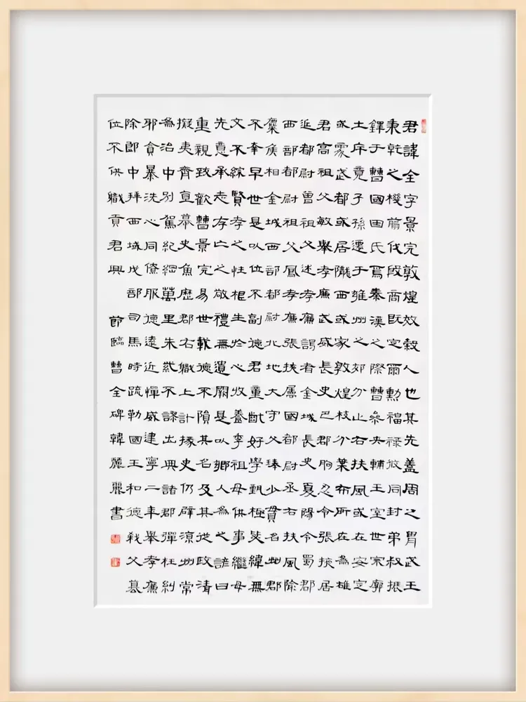 隶书:取法《张迁碑》《曹全碑》,融合简牍书法灵动特质,结体严谨而不失秀逸,蚕头燕尾变化丰富,兼具古朴厚重与时代新意。